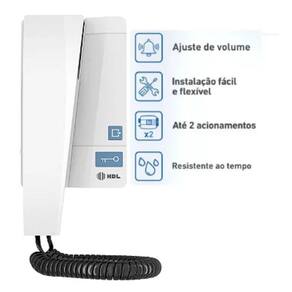 Novo Monofone Interfone HDL Série Advance, mais design e praticidade na sua casa. Vai trocar de interfone? Use a mesma fiação, mesmo porteiro eletrônico e mesma fechadura HDL, mas com NOVO DESIGN ultra moderno. Encaixa certinho numa caixa padrão 4x2” e funciona com instalação de 2 ou 3 fios. Compatível com todos os interfones HDL, dos mais novos aos mais antigos, como por exemplo:- Interfone Coletivo HDL MP / MPD- Interfone HDL F8 NTL / SN / SNTL- Interfone HDL F9- Vídeo Porteiro HDL Sense Classic / Seven / MCA- Vídeo Porteiro HDL VPI-AZ- Vídeo Porteiro HDL Class / Advance / Connect FIAÇÃO INDICADA: Fio Flexível Bitola Ø1mm- Tem 2 botões para acionamento de fechadura e outro dispositivo (ex.: outra fechadura ou portão eletrônico)- Funciona com instalações no padrão com 2 ou 3 fios.- Pode ser instalado como monofone principal ou como extensão.- Instalação com distância máxima de 500 metros.- Ajuste de volume da campainha, com função mudo (não perturbe). - Monofone HDL Advance: 147 x 89 x 47,05 mm (altura x largura x profundidade)O QUE ESTÁ INCLUSO? [01] Monofone Interfone HDL Advance Com 2 Botões Branco 90.02.12.002**somente o monofone, então a unidade externa não está inclusa**Código: 81002Marca: HDL