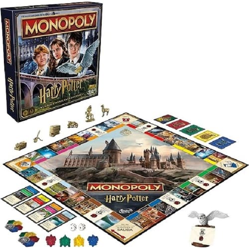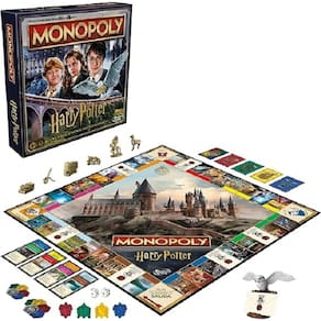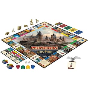 Quem está pronto para um ano mágico em Hogwarts? Hora de jogar como um dos estudantes em Monopoly Harry Potter. Para começar, cara jogador escolhe um peão dourado. Em seguida, escolhem uma carta de casa para entrarem numa das casas de Hogwarts. Nesta edição, as propriedades são as localidades de Hogwarts e os pontos de casa substituem o dinheiro Monopoly. Os jogadores percorrem o tabuleiro e usam pontos de casa para explorar locais famosos no castelo de Hogwarts e na vila de Hogsmeade. Quanto mais percorrerem, mas pontos receberão para as suas casas Os jogadores podem adicionar emblemas de casa quando completarem um conjunto de cor. As cartas do Correio-Coruja podem mudar a partida. O jogo termina quando todos os locais forem explorados, e o jogador com mais pontos de casa é o vencedor. Este é jogo de tabuleiro divertido para a família e é um ótimo presente para crianças a partir dos 8 anos, adolescentes e adultos que são fãs de Harry Potter.