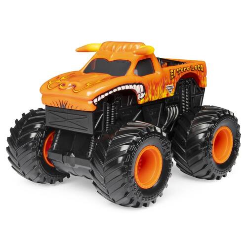Monster Jam Rev & Roar EI Toro Loco 2023 Sunny Apresentando a novíssima escala Rev n Roar 1:43, autênticos Monster Trucks Monster Jam. Empurre para frente ou para trás e veja ele ir. Ouça o som icônico dos monster trucks Monster Jam enquanto seu Rev n Roar ganha vida. Essas máquinas barulhentas apresentam tração nas quatro rodas, pneus de borracha Bkt oficiais e toneladas de detalhes, garantindo que esses caminhões potentes possam passar por cima de qualquer coisa. Apresentando um sistema de condução interno poderoso, esses caminhões de monstro podem esmagar, bater e bater como nunca antes visto. Imagens meramente ilustrativas.