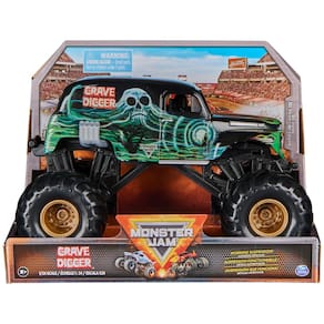 Monster Jam, caminhão monstro oficial do Grave Digger, veículo fundido sob pressão para colecionador, escala 1:24, brinquedos infantis para meninos e meninas de 3 anos ou mais — CAMINHÃO OFICIAL MONSTER JAM: melhore seu jogo com o novíssimo monster truck Monster Jam em escala 1:24! Com detalhes e gráficos incríveis, esta réplica autêntica tem o estilo e a arrogância de uma coisa real! - CARACTERÍSTICAS REALISTAS: A suspensão funcional permite que seu caminhão absorva mais impacto, então a ação épica do Monster Jam nunca para! Além disso, os pneus BKT de borracha oferecem maior tração para levar seu caminhão a novos patamares! - COLECIONE TODOS ELES: Há mais caminhões Monster Jam para colecionar do que nunca! Adicione todos eles à sua coleção (cada um vendido separadamente) e conquiste a vitória em seu próprio evento Monster Jam! - PRESENTE INDISPENSÁVEL: com seus sistemas de suspensão funcionais e detalhes autênticos, os caminhões fundidos sob pressão Monster Jam em escala 1:24 são os presentes perfeitos para meninos e meninas de 3 anos. - BRINQUEDOS PARA MENINOS E MENINAS DE 3 ANOS: os monster trucks Monster Jam para meninos e meninas são para maiores de 3 anos. Brinquedos, conjuntos de brinquedos, carrinhos de brinquedo e caminhões RC Monster Jam estão no topo das listas de desejos de brinquedos e jogos infantis! - Inclui: 1 caminhão Monster Jam 1:24 Scale — coberto pelo compromisso Spin Master Care. Veja abaixo os detalhes completos
