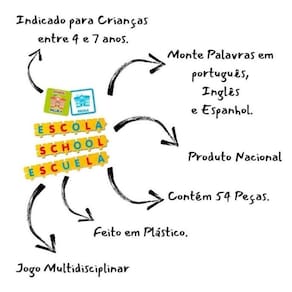 Monta Palavras Trilíngue - Elka São 54 peças plásticas de encaixe com todas as letras do alfabeto para formar palavras em Português, Inglês e Espanhol. A linha multidisciplinar une e agrega disciplinas em um só tema, de forma lúdica, objetiva e criativa. Código: 081326. Dimensões aprox. da embalagem em cm: 5,5x24x31. Peso liq. Aproximado do produto na embalagem: 388g. Referência do Modelo: 1205. Certificado Inmetro: 000985/2019. Conteúdo da Embalagem: 54 peças com letras do alfabeto. Composição/material: Plástico. Idade Recomendada: a partir dos 4 anos. Garantia: 90 dias contra defeitos de fabricação pelo fabricante. Imagens meramente ilustrativas. As cores e tonalidades podem variar. Gênero - Meninas Meninos Unissex Idade - 4 anos 5 anos 6 anos 7 anos Tipo - Raciocínio Lógico Quantidade de Peças - Até 60 Peças Ean: 7896448112053