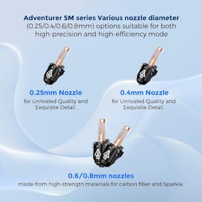 Flashforge Conjunto de bocal Adventurer série 3/Adventurer 4 - Bocal destacável rápido 3S - mude rapidamente os bocais sem complicações para ajustes de impressão eficientes. - Temperatura máxima de 280 °C – Imprima com precisão em temperaturas elevadas para compatibilidade de material versátil. - Bocal de alto fluxo de 32 mm³/s - experimente velocidades de impressão mais rápidas com um design de bocal de alto fluxo. - Otimizado para Adventurer 5M/5M Pro - Perfeitamente adaptado para as impressoras 3D Adventurer 5M e 5M Pro para integração perfeita. - Conjunto de bocal confiável – garante desempenho consistente e saída de qualidade em cada trabalho de impressão.