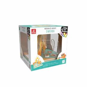 O objetivo do jogo é levar o gato pela sala, deslizando-o pela base, ou ajudar o rato levando-o pelo arame. Essa brincadeira estimula a habilidade manual das crianças, além de ser divertida e desafiadora.