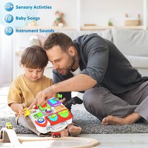 Musical Montessori Busy Board: equo com mais de 20 atividades sensoriais, 10 músicas para bebês e 10 sons de instrumentos, ajuda as crianças a aprenderem a manipular objetos do cotidiano enquanto desenvolvem suas habilidades motoras finas.