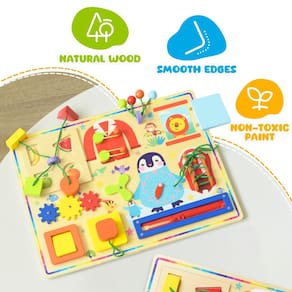 - Aprender através da brincadeira: nosso quadro ocupado para crianças não apenas traz alegria, mas também ensina habilidades essenciais para a vida, como fechar, abotoar e trocar. Aumente as habilidades cognitivas, de resolução de problemas, de pensamento e prática de maneira divertida e interativa