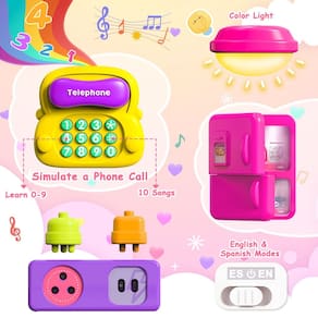 Brinquedo educativo Montessori 54 em 1: nosso quadro montessori ocupado para crianças se concentra em habilidades ao ar livre, uso de eletrodomésticos e habilidades para a vida. Possui mais de atividades, incluindo 10 músicas, números 0-9, semáforos piscando e dois níveis de brilho da luz. É projetado para ajudar as crianças a explorar objetos do dia a dia enquanto desenvolvem suas habilidades motoras finas de uma maneira divertida e envolvente. - Brinquedo educativo Montessori 54 em 1: nosso quadro montessori ocupado para crianças se concentra em habilidades ao ar livre, uso de eletrodomésticos e habilidades para a vida. Possui mais de atividades, incluindo 10 músicas, números 0-9, semáforos piscando e dois níveis de brilho da luz. É projetado para ajudar as crianças a explorar objetos do dia a dia enquanto desenvolvem suas habilidades motoras finas de uma maneira divertida e envolvente. - Design de desenho animado colorido: este brinquedo de tabuleiro musical ocupado para crianças de 1 a 3 anos apresenta um design adorável de desenho animado com cores vibrantes e rodas, permitindo que os pequenos o empurrem, infinitas horas de diversão e aprendizado para crianças no estágio de curiosidade sobre tudo! - Brinquedos de educação infantil e aprendizagem bilíngue: nossa prancha ocupada para brinquedo de 1+ ano de idade é projetada para ajudar crianças a aprender inglês e espanhol números 0-9, reconhecer cores e identificar animais. As crianças também podem se envolver em atividades interativas para dominar habilidades essenciais da vida, como amarrar cadarços e escovar os dentes. Ótima escolha para famílias bilíngues ou aqueles que querem expor crianças pré-escolares ao espanhol. - Mantenha seus filhos ocupados e calmos: compacto e leve com uma alça embutida, é fácil de levar para qualquer lugar e mantém as crianças entretidas por horas. Perfeito para crianças de 1 ano ou mais durante longos passeios de carro ou voos. - Presentes para meninas de 18 meses: brinquedo de desenvolvimento precoce para crianças de 1 a 3 anos, brinquedo educativo para presente de aniversário de menino de 1 a 2 anos, presente ideal de Páscoa, primeiro presente de Natal. 3 pilhas AA são necessárias, não incluídas.