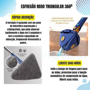 O Mop Triangular é um esfregão giratório versátil, extremamente moderno e com design ergonômico. Projetado para facilitar a sua vida na hora de limpar a casa, suas funcionalidades surpreendem até os mais experientes quando o assunto é limpeza do lar.