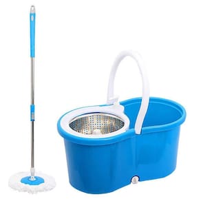 Mop Esfregão Giratório de Limpeza Inox com Rodinha e Refil Cor: Azul Com o Mop Rotatório a sua limpeza será muito mais fácil, prático, durável e eficiente O Mop vai substituir a vassoura, o rodo e o pano de chão, tem grande poder de absorção, pode ser em pisos frios, sintéticos ou amadeirados etc. Evita contato com produtos químicos e água e sujeira. --------------------------------------- ----------------------------------------- Características: - Centrifuga inox; - Trava para regulagem de altura e função giratória on/off; - Escoamento de água com tampão; - Alça flexível para transporte e manuseio; - Acompanha 2 refil de microfibra; - Cabo telescópico em aço inoxidável ajustável. Dimensões: - Altura: 21 cm; - Largura: 25,5 cm; - Comprimento: 45 cm; - Altura máx. Do cabo: 1,28 m; - Capacidade do balde: 12 litros em total e 7 litros em uso.