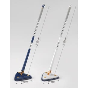 Mop Esfregão Limpeza Triangular Giratório Ajustável Limpador de parede de microfibra Triangle Mop com 2 Refil O Mop Triangular é um esfregão giratório versátil, extremamente moderno e com design ergonômico. Projetado para facilitar a sua vida na hora de limpar a casa, suas funcionalidades surpreendem até os mais experientes quando o assunto é limpeza do lar. A tarefa de limpar precisa ser o mais simples possível. Para isso, ele conta com uma bandeja de limpeza com design triangular e cabeça giratória de 360 graus, permitindo que você não deixe poeira no canto morto, resolvendo facilmente o que antes parecia impossível.Para as poeiras em cantos mais altos, o Mop Power com uma haste extensível, que pode o deixá-lo com até 1,22 metro de comprimento. Sem esticar muito os braços, você consegue elevá-lo a uma boa altura e com muita segurança. Este Mop não é só um objeto de limpeza que elimina poeiras. Seu esfregão é equipado com um pano de microfibra engrossado e nanotecnologia, que pode absorver água rapidamente em 5 segundos e possui excelente capacidade de adsorção, travando firmemente a poeira.Você pode, também, limpar outras substâncias líquidas, como gordura, assegurando ao máximo a versatilidade deste produto. Para esta tarefa, o Power Mop possui a função de espremer, que tira todo o excesso de líquido da microfibra, sem que você precise agachar. Tudo isso graças a tecnologia push-pull integrada ao produto. Não é maravilhosoCores Enviadas Aleatórias Conforme Disponibilidade em Estoque, Podendo ser na cor Azul ou BrancoSolução ideal para uma limpeza ainda mais completa e eficiente Com seu formato triangular, ela é perfeita para alcançar os cantos e áreas de difícil acesso, garantindo uma limpeza profunda em todos os tipos de pisos, como madeira, cerâmica e porcelanato. Sua cabeça giratória permite movimentação livre e fácil, enquanto seu sistema de torção automático remove o excesso de água sem esforço. Além disso, sua haste telescópica possibilita ajustá-la na altura ideal para cada usuário. - 2 em 1: limpa, seca e dá brilho - Para todos os tipos de vidros, box, azulejos e superfícies lisas - Não utilizar na máquina, lavar apenas à mão ESPECIFÍCAÇÕES: - Material: Plástico; algodão; alumínio; poliéster - Dimensões aprox. altura : 122cm Itens Inclusos 01 Rodo Mop 02- Pano Microfibra