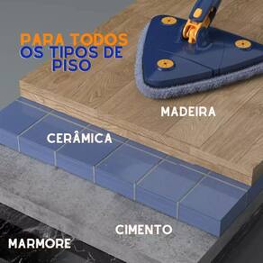 Características: - Design compacto, desmontável, simples e conveniente de usar; - Economize tempo e esforço na hora de fazer a faxina em casa; - Rotação de 360 remove toda a sujeira em uma única passada; - Esfregão com cabeça triangular facilita a limpeza e alcança até os cantinhos mais altos e difíceis de limpar; - Sistema inovador de torção separa a água suja da limpa, mantendo suas mãos longe da sujeira e dos produtos químicos; - Não precisa torcer nem secar os panos sujos; - Microfibra de alta absorção limpa e seca de forma eficaz todo tipo de piso.