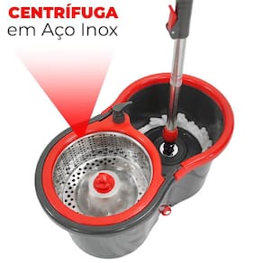 Esfregão Mop Giratório com Balde Vermelho e Preto - Powermaid