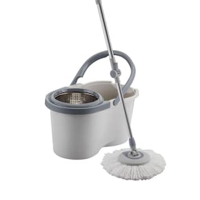 O balde mop giratório é onde acontece o processo de centrifugação. Ele costuma ter dois compartimentos: um para lavar e outro para secar o esfregão. Alguns modelos vêm com pedal, outros com alça para acionamento manual. Se o seu balde trincou ou danificou com o tempo, dá para encontrar o acessório separadamente e seguir usando seu mop normalmente.