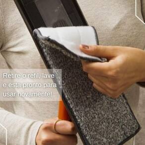 – Permite alcançar cantos de difícil acesso, facilitando a limpeza debaixo de móveis e em áreas estreitas. Refil de microfibra lavável