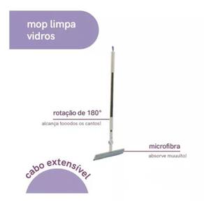 O QUE VEM: 1 cabo de aço inox que alcança até 131 cm; 1 rodinho; 1 refil 100% microfibraLIMPEZA EFICIENTE: O rodo possui borracha maleável na medida para não deixar resíduos. A microfibra é lavável, ultra absorvente (8x seu peso) e eletrostática ( atrai e retém o pó). Não deixa resíduos e fiapos.CABO COMPRIDO: O cabo é expansível até 1,31m, permite alcançar todos os cantos da casa sem precisar se abaixar. Além disso, possui rotação 180 tornando ainda mais eficiente a limpeza diáriaBASE LAVÁVEL: A base lavável retém sujeira e água suja para limpezas mais higiênicas. Ter um refil extra vai facilitar o dia a dia da limpeza, enquanto um está sendo lavado, você tem outro de reserva.PONTEIRA DE SILICONE: prático para pendurar e armazenar em espaços pequenos.MEDIDAS DO CABO: de 89 cm à 131cm; MEDIDAS DO RODO: 27,5cm x 5cm;