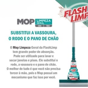 O Mop Limpeza Geral da Flash Limp- MOP7671 tem grande poder de absorção. Pode ser utilizado para lavar e secar janelas e pisos. Ele substitui o rodo, a vassoura e o pano de chão. O melhor de tudo é que você não precisa torcer à mão. O aparelho possui um mecanismo que faz isso por você. Seu dia a dia ficará muito mais simples e a sua casa muito mais limpa, com o Mop Limpeza Geral da Flash Limp.