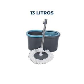 Mantém as mãos longe dos produtos químicos, água e sujeira; lavagem prática do esfregão; remoção do excesso de água; cabo de inox superleve com 1,2m e inclinação de 180 para facilitar a limpeza de lugares estreitos e de difícil alcance, como: tetos, janelas e embaixo dos móveis. Balde com com capacidade de 13l e alça que facilita o transporte. Cor: cinza e azul