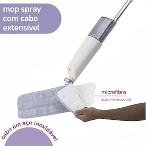 Mop Simplo Spray Flexivel com Gatilho e Esfregão de Microfibras Características Gerais do Produto: Benefícios do produto: Sistema de spray, com rotação horizontal 360º e vertical 180º e microfibra de alta absorção. Dimensões AxLxP CM : 127 X 11 X 37 Produzido em: Aço inox, PVA e PP Cor acabamento: Branco, Cinza e Violeta : 90 dias junto ao fabricante Capacidade: 360 ML Acompanha o produto: 01 Mop 01 Reservatório 01 Refil : 90 dias Marca: Não Informado