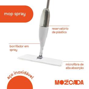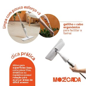 conheça o mop spray com gatilho e dispenser da Mozcadabr / br / br / br / Tem reservatório para água ou produto de limpeza: pode ser guardado abastecido e sempre pronto para o uso e a microfibra é de alta absorção: limpa com menos esforço e diminui a utilização de produtos químicosbr / br / Pode:br / br / br / Não pode:br / br / br / Leve qualidade e beleza para sua casabr / br / Medidas:br / br / Altura: 126cmbr / Largura: 39cmbr / Comprimento: 11cmbr / Marca: Mozcada