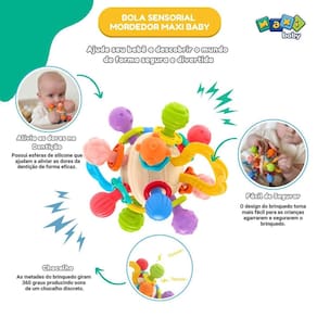 Mordedor Chocalho Bebê Bola Sensorial Maxi Baby Apresentamos o Brinquedo Bebê Bola Sensorial Chocalho Mordedor da Maxi Baby, o presente ideal para os pequeninos em crescimento. Este brinquedo multifuncional combina mordedor, chocalho e bola de dentição sensorial, proporcionando uma experiência divertida e educativa para bebês de 0 a 18 meses. O Brinquedo de Dentição e Chocalho é projetado para atender às necessidades especiais dos bebês durante a fase de dentição e desenvolvimento sensorial. Com um design científico, ele possui texturas variadas e partículas de massagem que aliviam a coceira nas gengivas, ajudam a desenvolver a coordenação motora e proporcionam uma pegada confortável para as mãozinhas pequenas. Feito de Plástico ABS e Silicone, o brinquedo é não tóxico, livre de BPA e extremamente durável. A superfície lisa e sem rebarbas garante a segurança do seu bebê, enquanto o Plástico ABS macio protege as gengivas frágeis durante a mastigação. O brinquedo possui um esquema de cores vibrantes para estimular o reconhecimento visual, e o som do chocalho e o ruído de amassado envolvem o bebê em uma experiência sensorial completa. Ideal para promover o desenvolvimento cognitivo e a exploração sensorial. Perfeito para bebês com necessidades sensoriais orais, como TDAH e , o brinquedo ajuda a acalmar e focar, além de reduzir a mastigação de objetos inadequados. Fácil de Limpar: O brinquedo pode ser desinfetado em alta temperatura, sem deformações ou desbotamento. É seguro para uso em lava-louças e geladeiras, e recomenda-se esterilizar antes do primeiro uso para garantir a máxima higiene. Transforme a experiência de dentição do seu bebê em um momento de aprendizado e diversão com o nosso brinquedo de dentição e chocalho. Adquira o seu agora e veja a alegria e o conforto que ele traz para os pequenos Principais Características: - Idade Recomendada: A Partir de 3 Meses - Design colorido para atrair a atenção do bebê. - Pontos de massagem convexos para aliviar o desconforto da dentição. - Cores vibrantes e alta resistência ao calor para segurança adicional. - Bordas 360 polidas e lisas. - Formas realistas e cores brilhantes. - Em conformidade com o INMETRO segurança de brinquedos. - Plástico ABS que é livre de BPA, Cinza e ftalatos Especificações Técnicas: - Conteúdo da Embalagem: 1 Brinquedo Mordedor e Chocalho - Material/ Composição: Plástico ABS - Dimensões do Produto: 13,0 x 11,0 x 9,5 cm aprox. - Peso: 0,85kg - Certificado Pelo INMETRO 009729/2024 - : 30 Dias Contra Defeito de Fabricação pelo Fabricante - Código do Fabricante: 21718 - EAN: 7899403217183 - Marca: Maxi Baby Imagens meramente ilustrativas, as cores e estampas podem variar de acordo com o lote do fabricante. Homologação Inmetro: CE-BRI/ICEPEX-I 02439-25-14