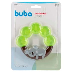 Mordedor com Água - Massageador - Coala - Verde - Buba: Os bebês vão amar o mordedor para bebê com água dentro da Buba! Com design divertido em formato de coala e textura macia, este massageador de gengiva é ideal para aliviar o desconforto causado pelo nascimento dos primeiros dentinhos. Além disso, possui formato perfeito para o pequeno segurar e morder enquanto utiliza o coçador de dente para bebê. Informações: • Produto: Mordedor com Água Coala • Marca: Buba • Modelo: Coala • Tipo: Mordedor Infantil com Formato • Categoria: Bem-Estar do Bebê • Subcategoria: Mordedores para Bebê • Conteúdo: 01 Mordedor • Recomendação: para crianças a partir de 04 meses de idade Especificações: • Referência: 14490 • Código de Barras: 7908103744902 • Embalagem (C x A x L): 14 x 19 x 02 cm • Embalagem (Peso): 0.090 g • Material / Composição: Acrilonitrila Butadieno Estireno, Espuma Vinílica Acetinada e Água. • Registro: 007882/2021 • Certificado: Órgãos Autorizados - OCP´S (Organismos de Certificação de Produtos) Benefícios do mordedor para o bebê: • Alivia a coceira e dor na gengiva • Facilita o nascimento dos dentes • Fortalece a musculatura da mastigação • Estimula habilidades motoras básicas • Desenvolve aspectos emocionais e afetivos • Proporciona o treino dos sentidos, estimulando a criança naturalmente Aviso: • As imagens são meramente ilustrativas • Os tamanhos e medidas são aproximados • As cores e estampas dos produtos podem ter variações • As informações são de responsabilidade do fabricante ou fornecedor
