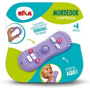 -Mordedor em formato de controle remoto adequado para as mãos do bebê.
