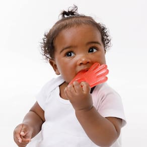 Mordedor com água no formato de mãozinha! Divertido e ainda ajuda seu bebe na fase dos primeiros dentinhos