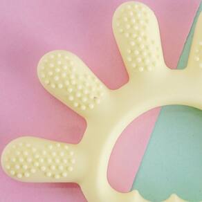 Alivio seguro e eficaz: O silicone macio e flexível massageia as gengivas, aliviando a dor e a coceira da dentição.