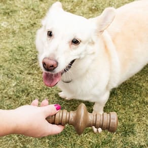 O RevoluCAO da Germanhart é feito em material sustentável, confeccionado com uma mistura de PP e fibra de coco, enriquecido com aromatizantes que realçam o irresistível cheiro de churrasco. Este produto foi cuidadosamente desenvolvido com o objetivo de estimular o instinto natural de roer dos animais, proporcionando uma alternativa saudável e duradoura para evitar que roam outros objetos da casa, como móveis.