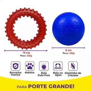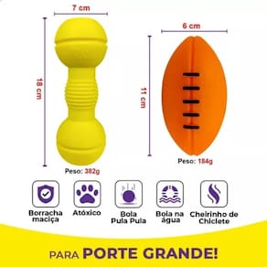 O Kit para cachorro faz parte de uma seleção cuidadosa de brinquedos em borracha maciça e não tóxica que vai divertir e promover a qualidade de vida de seu cachorro.
