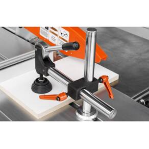 Pressionador com Revestimento de Borracha: O material de pressionamento revestido de borracha confere aderência segura aos painéis sem danificar sua superfície. Isso garante uma fixação estável durante o corte, evitando deslizes e imprecisões.