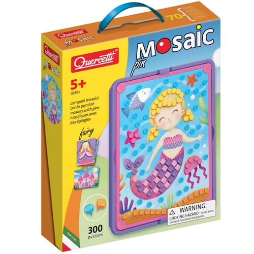 COM AS 300 TARGAS REDONDAS E AS CORES QUADRADAS, EMPURRE AS 8 CARTAS ILUSTRADAS SEGUINDO O PADRÃO PARA BAIXO PARA CRIAR UM LINDO MOSAICO. A ESTRUTURA EMBELEZA SUA OBRA DE ARTE E A CESTA AJUDA VOCÊ A PEGAR TODAS AS TINTAS E MANTÊ-LAS EM ORDEM QUANDO TERMINAR DE SER REPRODUZIDA. FAZER MOSAICOS INSERINDO ALFILERES EM CARTÕES É UMA ATIVIDADE DIVERTIDA E CRIATIVA QUE ESTIMULA A SENSIBILIDADE ARTÍSTICA E TREINA A COORDENAÇÃO MANO-OJO.
