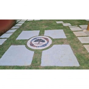Piso mandala em mosaico feito com pedras