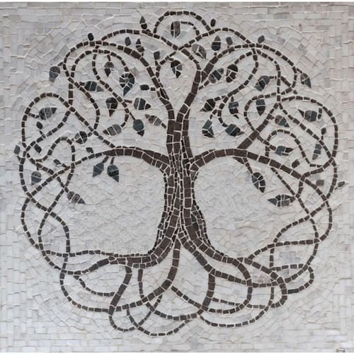 Especificações técnicas do mosaico: Feito com pedras - Mármores e granitos de todo o Brasil e importados da Europa e Ásia - para obter todas as cores desejadas em pedras naturais; Vem todo montado sobre tela, só colocar conforme manual de colocação, Resistência e Durabilidade em área interna e externa; Espessura de 10 mm Mesma espessura do porcelanato ou piso cerâmico Liso e agradável para uso diário; Mosaico feito integralmente à mão com técnica do mosaico romano