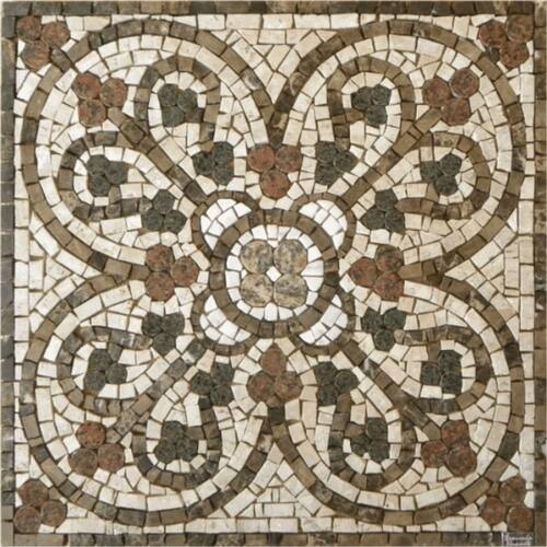Especificações técnicas do mosaico: Feito com pedras - Mármores e granitos de todo o e importados da Europa e Ásia - para obter todas as cores desejadas em pedras naturais; Vem todo montado sobre tela, só colocar conforme manual de colocação, Resistência e Durabilidade em área interna e externa; Espessura de 10 mm Mesma espessura do porcelanato ou piso cerâmico Liso e agradável para uso diário; Mosaico feito integralmente à mão com técnica do mosaico romano;