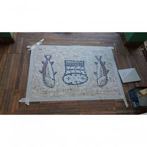 Especificações técnicas do mosaico: Feito com pedras - Mármores e granitos de todo o e importados da Europa e Ásia - para obter todas as cores desejadas em pedras naturais; Vem todo montado sobre tela, só colocar conforme manual de colocação, Resistência e Durabilidade em área interna e externa; Espessura de 10 mm Mesma espessura do porcelanato ou piso cerâmico Liso e agradável para uso diário; Mosaico feito integralmente à mão com técnica do mosaico romano;