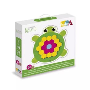 Uma simpática Tartaruguinha e diversas peças coloridas para montar e brincar com o mosaico. São 24 sugestões de design para reproduzir no tabuleiro ou simplesmente deixar livre a imaginação e criar centenas de possibilidades. Trabalha o raciocínio lógico, atenção, concentração de maneira lúdica e criativa. Feito de madeira reflorestada. Contém 1 tabuleiro em formato de tartaruguinha (25x23cm), 60 peças coloridas (3×3,5cm) e 12 fichas com 24 maneiras para reproduzir. Indicado para crianças a partir de 3 anos. Recomenda-se a interação de um adulto. Não recomendado para menores de 3 anos por conter partes pequenas que podem ser engolidas. Utilizamos materiais seguros, duráveis e ecológicos.
