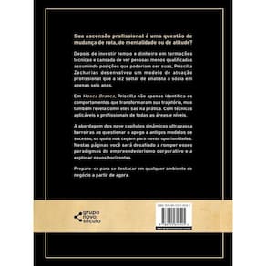Sua ascensão profissional é uma questão de mudança de rota, de mentalidade ou de atitude? Depois de investir tempo e dinheiro em formações técnicas e cansada de ver pessoas menos qualificadas assumindo posições que poderiam ser suas, Priscilla Zacharias desenvolveu um modelo de atuação profissional que a fez saltar de analista a sócia em apenas seis anos. Em Mosca Branca, Priscilla não apenas identifica os comportamentos que transformaram sua trajetória, mas também revela como eles são na prática. Com técnicas aplicáveis a profissionais de todas as áreas e níveis. A abordagem dos nove capítulos dinâmicos ultrapassa barreiras ao questionar o apego a antigos modelos de sucesso, os quais nos cegam para novas oportunidades. Nestas páginas você será desafiado a romper esses paradigmas do empreendedorismo corporativo e a explorar novos horizontes. Prepare-se para se destacar em qualquer ambiente de negócio a partir de agora. Ean: 9786555616545