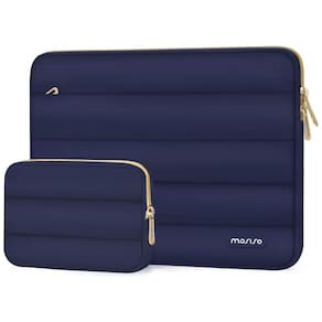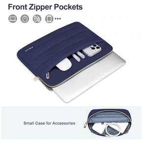 A MOSISO Sleeve para laptops de 15 a 16 polegadas em azul marinho combina proteção e elegância em um design leve e funcional. Confeccionada em poliéster acolchoado com forro felpudo, protege o laptop de impactos, arranhões e desgastes do dia a dia. O bolso frontal horizontal oferece espaço extra para acessórios essenciais, enquanto o estojo pequeno incluso permite guardar mouse, fones ou cabos de forma prática e organizada. Slim e leve, a sleeve desliza facilmente em mochilas, pastas ou bolsas de viagem, garantindo segurança e conveniência em casa, no trabalho ou em deslocamentos. Compatível com MacBook Pro 16" (2025-2019), Surface Book, notebooks ASUS, Lenovo, Acer, HP e Dell, é ideal para transportar seu laptop com estilo e proteção.