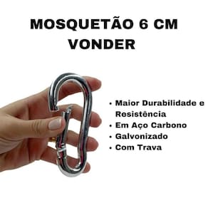Mosquetão com trava 6cm Academia Suporta 120kg Vonder Mosquetão 60mm Suporta 120kg Vonder DESCRIÇÃO DO PRODUTO: