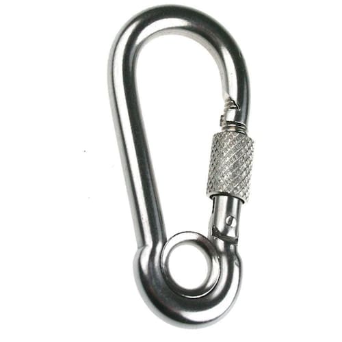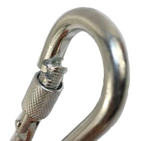 Mosquetão inox Descrição do produto Acessório multiuso, utilizado para fixação de cabos, chaveiros, cordas. Construído em aço 316 de alta resistência para utilização em ambientes marinhos. Informações adicionais: Material: inox 316 Alta resistência Trava de segurança Tens inclusos na embalagem: 01 mosquetão inox Ean: 7908779878161