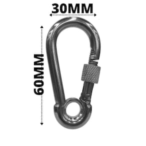 Mosquetão Inox Com Trava 6MM x 60MM Com Olhal Mosquetão Produzido Em Aço Inox 131, Com Olhal E Trava, Ideal Para Utilizar-Se Em Içamentos, Amarração, Fixação De Cargas, Etc. Acessório Multiuso, Utilizado Para Fixação De Cabos, Chaveiros, Cordas. Indicado Para Içamento De Cargas Respeitando A Carga De Trabalho E Ruptura Chaveiro, Esportes, Aventura, Pesca, Montanhismo, Iatismo, Vela E Demais Utilidades.