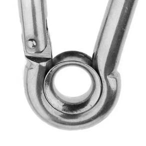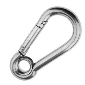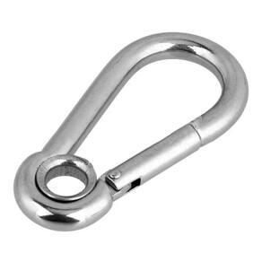 Mosquetão Inox Trava Automática 10mm x 100mm Com Olhal Mosquetão produzido em aço inox 316 com engate rápido e olhal, ideal para utilizar-se em içamentos, amarração, fixação de cargas, etc.