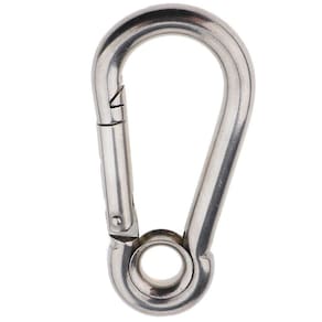 Mosquetão inox Descrição do produto Acessório multiuso, utilizado para fixação de cabos, chaveiros, cordas. Construído em aço 316 de alta resistência para utilização em ambientes marinhos.
