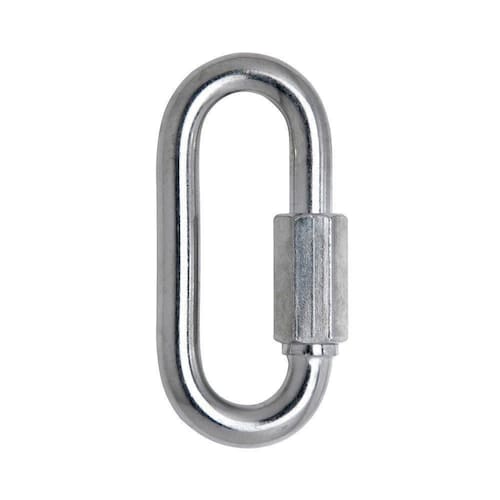 Mosquetão Oval Com Trava Roscada 9mm - Destinado à conexão de cabos de aço, cordas e ancoragem de pequenas cargas. Fabricado em aço maleável, com trava roscada sextavada. Acabamento Galvanizado. Características Gerais do Produto: Tamanho: 5X10X10cm 0,1Kg : 3 meses Marca: Não Informado Ean: 7898128083905