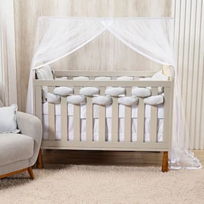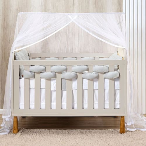 Mosquiteiro de Varal é produzido em tecido tule 100% poliamida na cor branco com detalhes em viés em toda volta do mosquiteiro. O mosquiteiro deve ser colocado no berço padrão americano e tem a importante função de proteger o Bebê durante o soninho ,evitando picadas de insetos e mosquitos, e também deixa o bercinho mais charmoso e elegante.