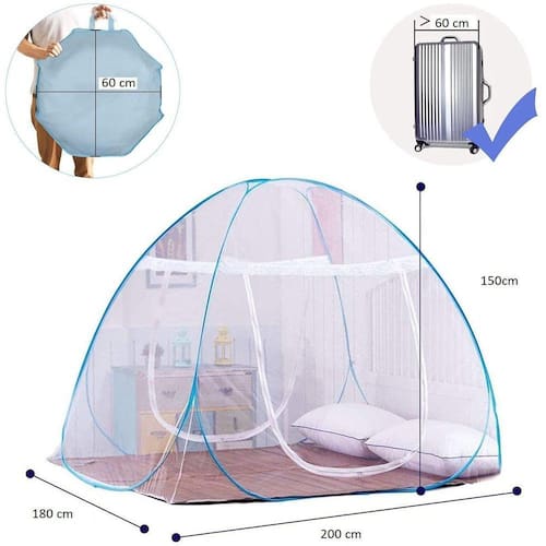 DescriçãoMosquiteiro Tipo Tenda Cama KING Dobrável Pratico E Portátil 180X200cmCom forro de tela no fundo2 portas de entradaMedidas: Cama KINGLargura: 180cmComprimento: 200cmAltura aberta : 150 cmMedidas fechada: 60cmx60cmTenda mosquiteiro mágico, portátil, montagem instantânea, ecológico e não tóxico, ferramenta eficaz para proteger contra picada de mosquitos, garante o seu sono tranquilo.Não ocupa espaço ao armazenar e pode ser lavado e secado no varal.Pequeno investimento para garantir várias noites de sono tranquilo.Defender contra mosquito é responsabilidade de todosQuem ame a sua família, cuide-se bemA tenda dobrável é fácil de lavar e secar manual. Fotos ilustrativas Marca: H2C