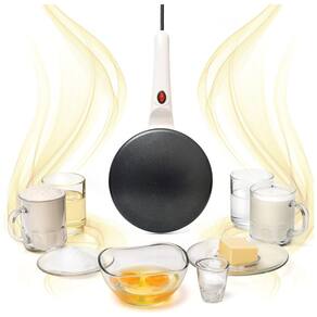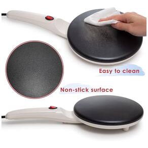 Máquina de crepe elétrica antiaderente de aço inoxidável, 800W, ideal para crepes, tortilhas, tacos, ovos e chapati. Possui controle automático de temperatura e design compacto para fácil manuseio e limpeza.Porta-fio
