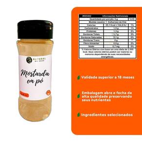 Nossa embalagem de alta qualidade garante a frescura e preservação das características da Mostarda em Pó por mais tempo. Cada frasco contém uma quantidade generosa desse tempero, permitindo que você desfrute desse sabor autêntico sempre que precisar.