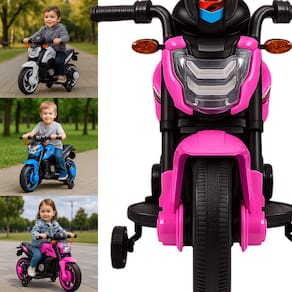 A Moto Elétrica Syren X2 12V é recomendada para crianças a partir de 3 anos e suporta até 25 kg. Ela comporta apenas 1 criança e oferece total segurança com estrutura resistente e rodas de apoio. Ideal para o uso supervisionado em locais planos, como quintais, varandas ou calçadas.