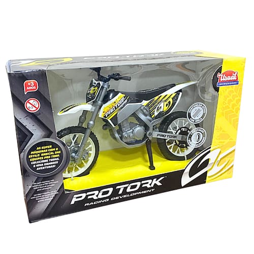 Marca: Usual Brinquedos Modelo: 388 - Moto Cross Protork Cor: Conforme estoque. Preto, branco e amarelo Material: Plástico Idade Mínima Recomendada: 3 (três) anos Partes articuláveis: Sim Partes que se soltam: Sim Usa pilhas: Não Dimensões da embalagem: 12 x 20 x 34 cm Peso: 337 Gramas Certificação: Certificado Pelos Órgãos Autorizados – OCP`S (Organismos De Certificação De Produtos) Registro: 000579/2019 Validade: Indeterminada Produto tóxico: Não Origem: Brasileira Garantia: 90 dias Fabricante: Usual Brinquedos LTDA